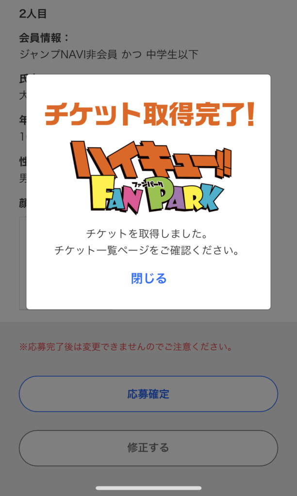 先行から見事に落ちまくってて、先着はもう半ば諦めモードだったので子どもたちの分も入力しよ~どうせもう締め切ってるじゃろ。とのんびりやってたらとれたキセキ。