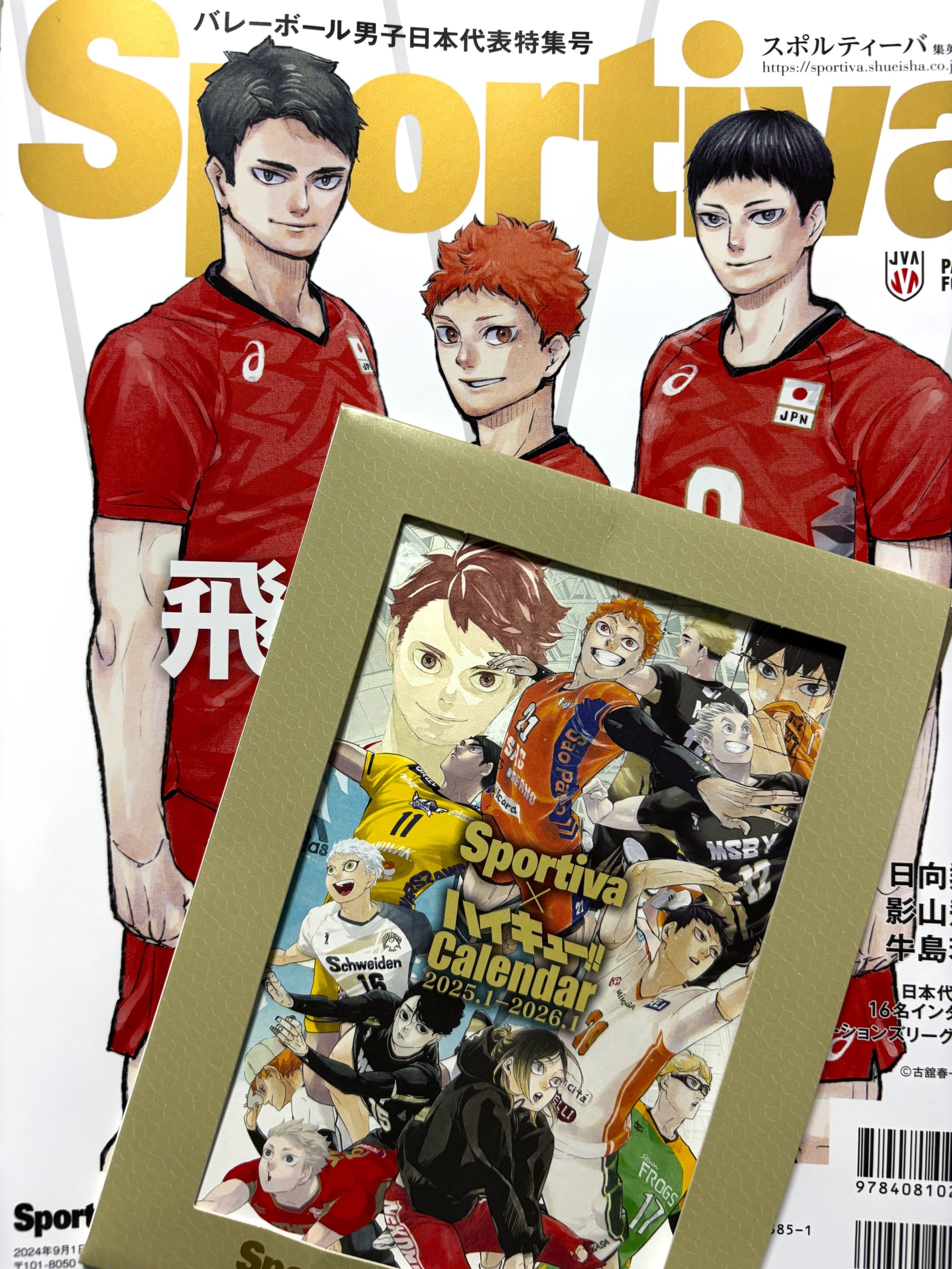 ヘイバレーボール尽くしな我が家です。 予約してた本届いたぜ。 スポルティーバ 男子バレーボール日本代表特集号 予約してたスポルティーバが届いたよ!! 牛島と影山が頑張って笑顔作れた貴重な描き下ろしぃ!! もうこれだけでありがとう。ごちそうさま。影山ポーズな私。 付録が、来年のカレンダーとか気が早い。 カレンダー日めくりとか他の付録とかでもたくさんあるけど、手に入っても唯一使えるグッズで良いよな。 カレンダーは小説版の表紙デザイン。 今から来年がお楽しみ♪
