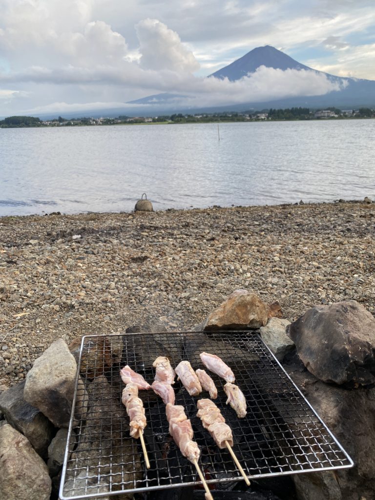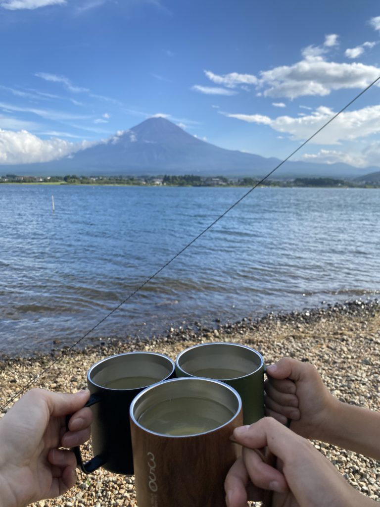 湖畔で富士山キャンプ